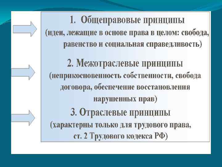 Принципы трудового права – основные положения, общие начала и идеи, выражающие сущность трудового права. Принципы трудового права закреплены в ст. 37 Конституции РФ и в Трудовом кодексе РФ.