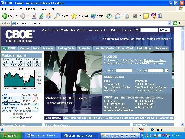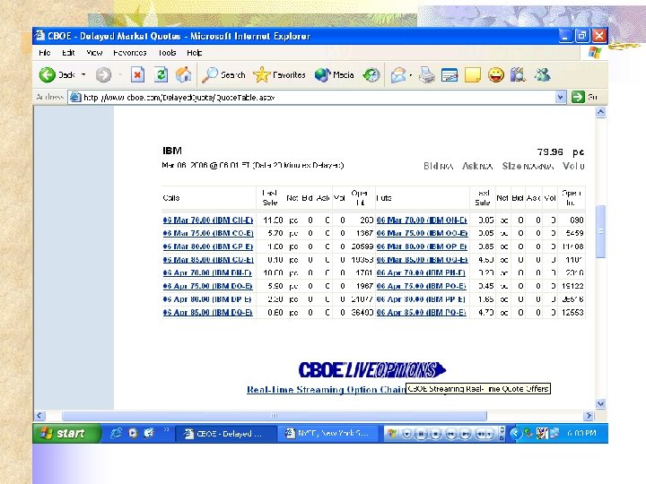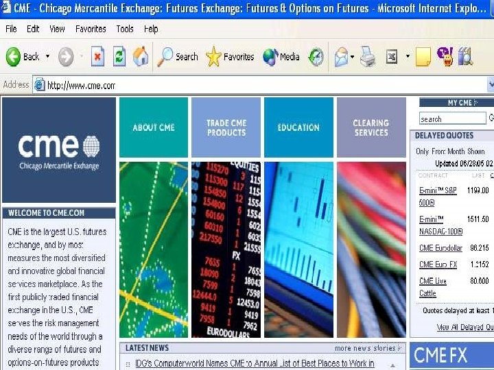 n n www. cme. com- Chicago mercantile exchange www. liffe. com, The London international financial futures and options exchange. www. nybot. com - New York Board of Trade www. nymex. com - New York Mercantile Exchange