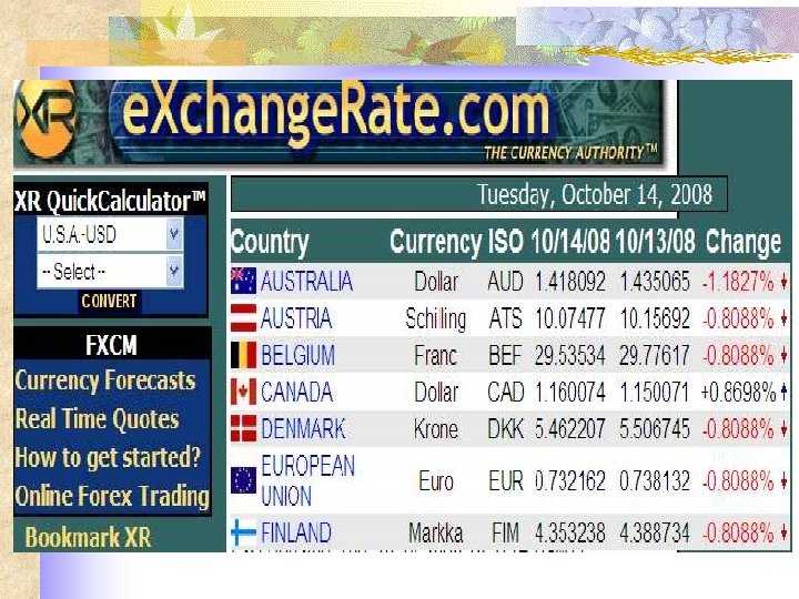 § Phương pháp biểu thị thứ hai (Indirect quotation-Volume quotation-gián tiếp) 1 nội tệ = y ngoại tệ Phương pháp yết giá này áp dụng ở một số nước: Anh, Mỹ, Úc, EU… Lưu ý Khi giao dịch hối đoái qua mạng điện tử, www. forexdirectory. net
