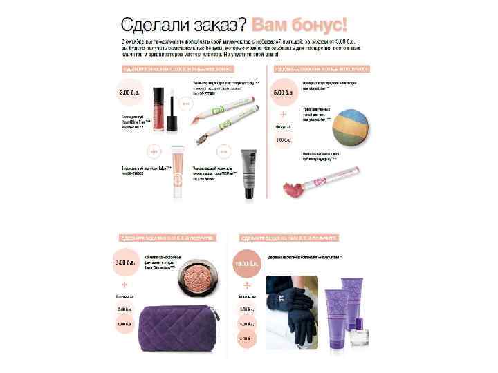 СПЛАНИРУЙТЕ БЮДЖЕТ НОВОГОДНИХ ПРАЗДНИКОВ ЗАРАНЕЕ!!! Цена Не цена, а праздник какой-то Туалетная вода High Intensity Sport 1650 990 2 в 1 - Шампунь/Гель для душа 600 360 Коллекция «Winter Wishes» 900 540 Набор туалетных вод «Winter Wishes» 800 480/240 Ароматизированный крем для рук 400 240 Набор ароматизированных бальзамов для губ 1000 600/200 Система по уходу за руками Спелый гранат 1650 990 Набор лаков для ногтей 500 300/100 Жидкая подводка-карандаш 500 300 Палитры теней для век 500 300 Губная помада 550 330 Мерцающий блеск для губ 550 330 Лак для ногтей 350 210 Крем-филлер для глубоких морщин 2000 1200 НОВИНКИ ОСЕНЬ-ЗИМА 2014!!!