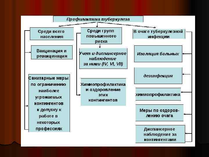 Профилактика туберкулеза l Вакцинация и ревакцинация БЦЖ l Химиопрофилактика l Санитарная профилактика l Социальная профилактика