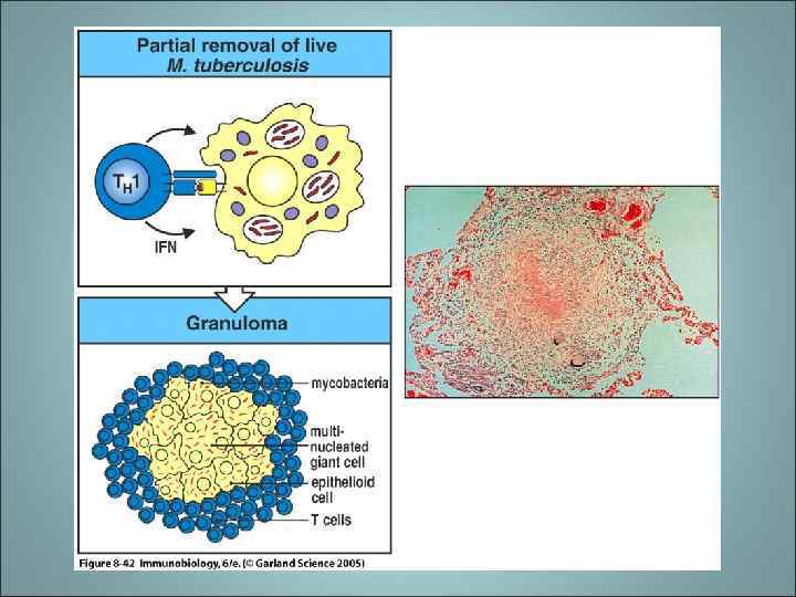 Образование гранулем • Макрофаги могут стать «убежищем» для внутриклеточных патогенов • При отсутствии элиминации возбудителя – туберкулезная палочка остается в фагосоме • Персистенция внутриклеточных патогенов в альвеолярных макрофагах, а также активация макрофагов и Т-лимфоцитов в инфицированной ткани могут привести к образованию гранулем