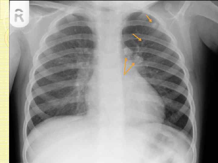 Признаки активности туберкулезного процесса: Нечеткость контуров очагов, перифокальная инфильтрация. Появление новых очагов отсева. Появление полостей распада. Лимфангит (появление «дорожки» к корню). Увеличение ВГЛУ.