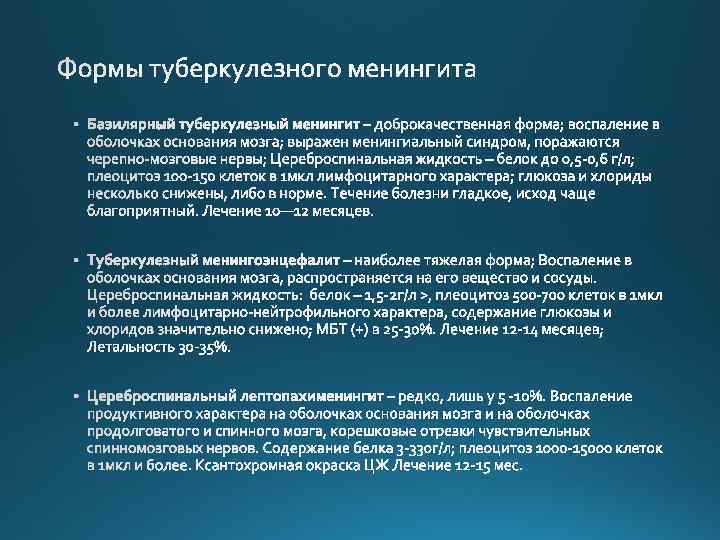 ТУБЕРКУЛЕЗНЫЙ МЕНИНГИТ преимущественновторичноетуберкулезноепоражение оболочек(мягкой, паутиннойитвердой), возникающееубольныхсразличными, чащеактивнымиираспространеннымиформамитуберкулеза.
