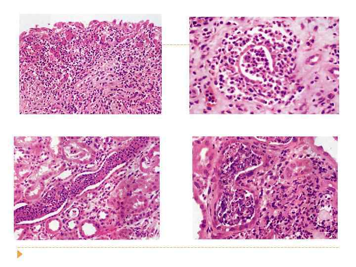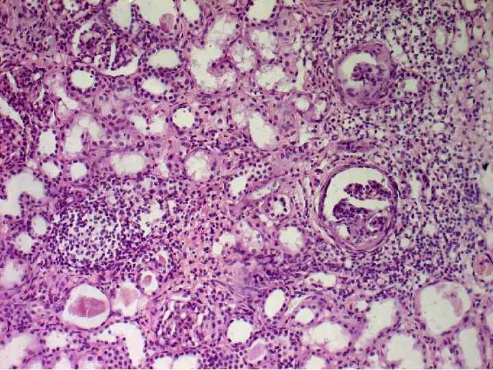 тубуло-интерстициальный нефрит (воспаление межуточной ткани с вовлечением нефрона) первичный (острый, хронический) лекарственный эозинофильный плазмоцитарный лимфогистиоцитарный вторичный (острый, хронический) гранулематозный лекарственный, СКВ, синдром Гудпасчера, реакция отторжения