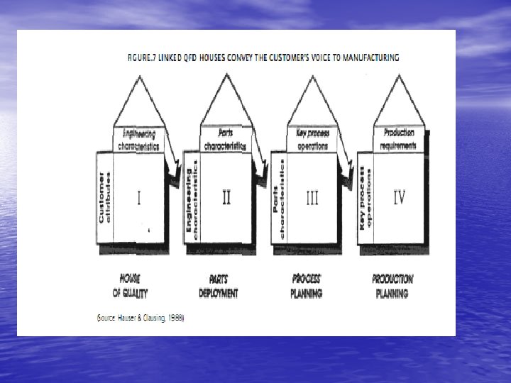 Pada setiap kasus Sullivan menguraikan secara singkat tabel yang sebelumnya’ menyetem keluaran memberi masukan ke dalam tabel yang berikutnya masukan kunci, dan menghadirkan transisi dari tahap pengembangan kepada pelaksanaan menyangkut tahap produksi di dalam pengembangan produk yang beredar. Benchmarking yang kwalitatif pelanggan mengambil bagian di dalam poros pelanggan yang horisontal. Pelanggan mengevaluasi produk dengan membandingkansemua usulan capaian menurut menyetem kebutuhan pelanggan dengan riset pemasaran lebih dulu untuk mendukung team QFD. .