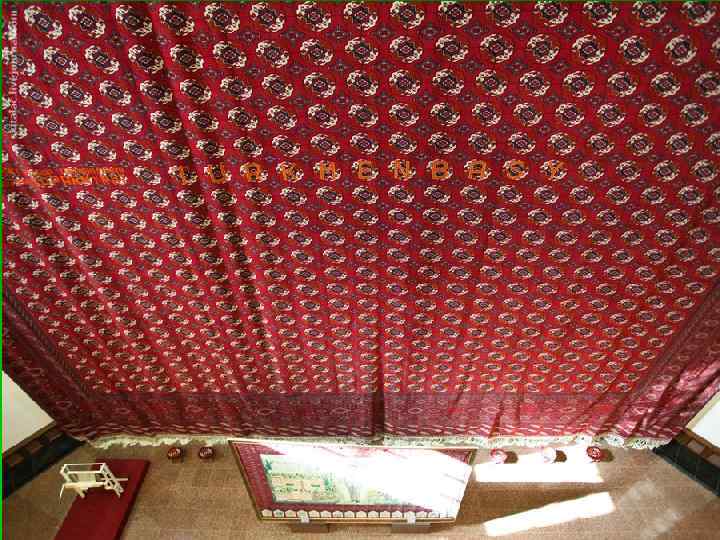 Ковроткачество § § § Искусство туркменского ковроткачества зародилось не менее шести тысячелетий тому назад. Древность туркменских традиций изготовления ковров подтверждают многочисленные археологические находки, а также письменные источники, которые рассказывают о необыкновенно красивых коврах из Парфии, которая находилась ранее на территории современного Туркменистана. Туркменские ковры самобытны и не похожи на ковровые изделия других народов ни техникой, ни орнаментом, ни цветовыми решениями. В цветовой гамме туркменского ковра преобладает бордовый цвет, который является фоном. А для орнамента используются темные тона синего, зеленого, черного цветов, а также оранжевый и малиновый орнамент. Черный цвет является неотъемлемой составляющей рисунка туркменского ковра и символизирует собой стихию воды, и как вода обрамляет землю, так и орнаментальные элементы черного цвета обрамляют все остальные орнаменты ковра, разграничивая и разделяя один орнаментальный элемент от другого. По традиции, в туркменском ковроткачестве используют только натуральные красители, что позволяет добиться характерной, традиционной цветовой гаммы, а в качестве сырья со стародавних времен используют только лучшие сорта шерсти местных пород овец. Очень качественные и практичные ковры, великолепно переносят неблагоприятные воздействия в виде влаги или грязи, создают уют в доме и радуют глаз своей красотой.