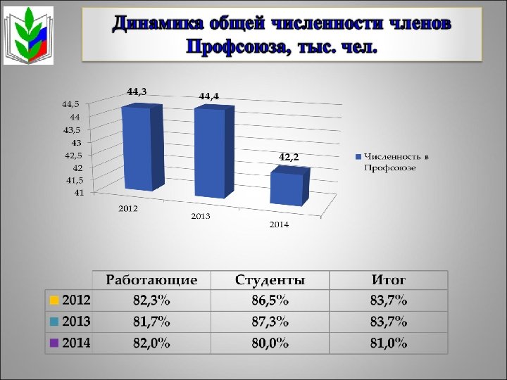 Инновационные формы работы Кредитный потребительский кооператив «Образование» 2013 г. чел. 785 чел. 2014 г. - 746 чел. 2015 г. – 737 16 юридических лиц Отраслевой пенсионный фонд «Образование и наука» Общее количество членов – 83 чел. Санаторно-курортное лечение Пособие на санаторно-курортное лечение и единовременную выплату получили все работники ОО на сумму 2015 г. – 559517, 8 руб. (2014 г. - 302989, 9 тыс. руб. , 2013 г. – 392089, 9 тыс. руб. ) ПНП «Образование» Федеральный бюджет - 1, 6 млн. руб. Областной бюджет Обком Профсоюза - 1, 0 млн. руб. - 50, 0 тыс. руб.