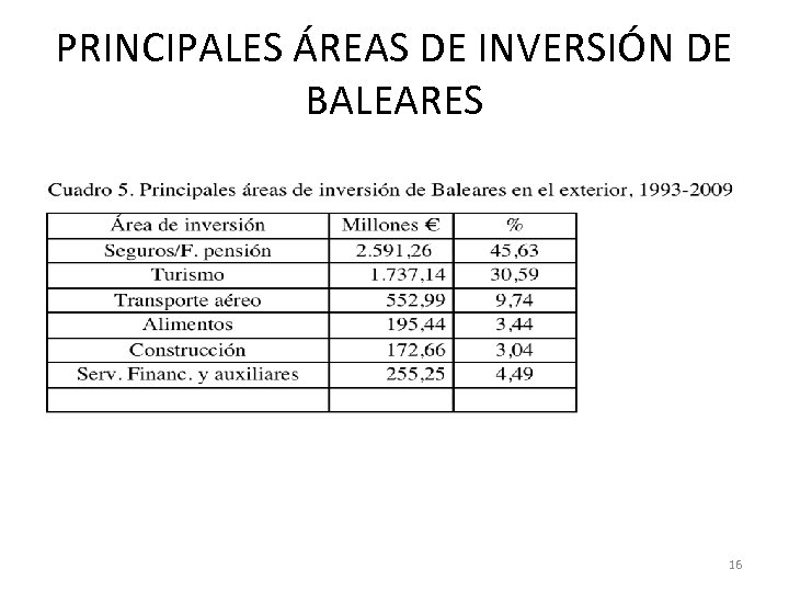 PRINCIPALES ÁREAS DE INVERSIÓN DE BALEARES 16