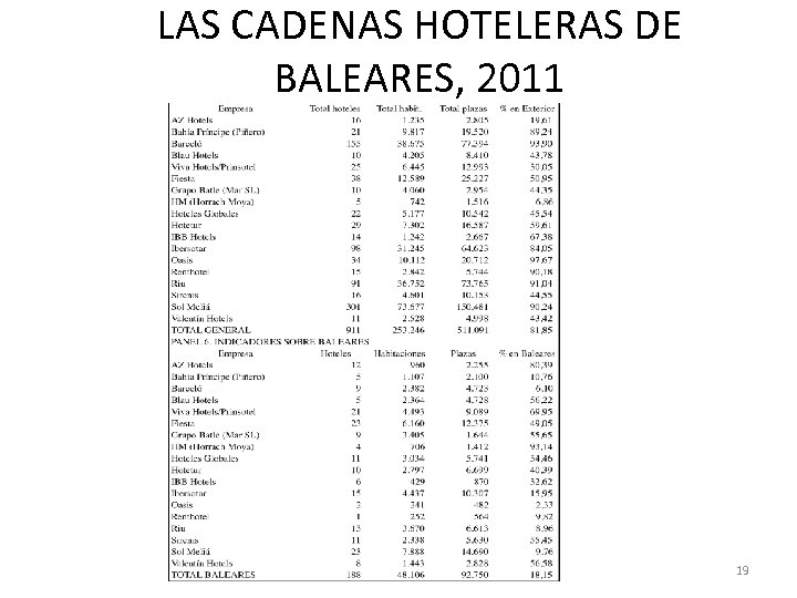 LAS CADENAS HOTELERAS DE BALEARES, 2011 19
