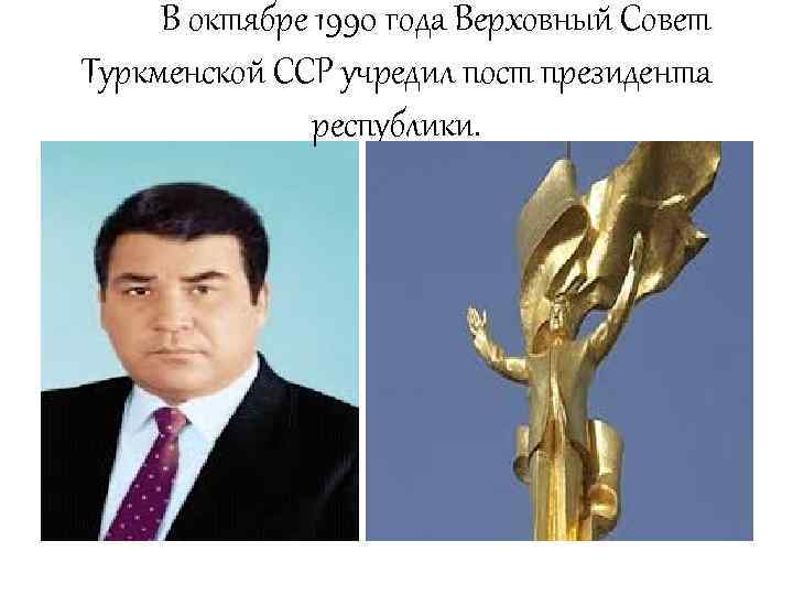 В октябре 1990 года Верховный Совет Туркменской ССР учредил пост президента республики.