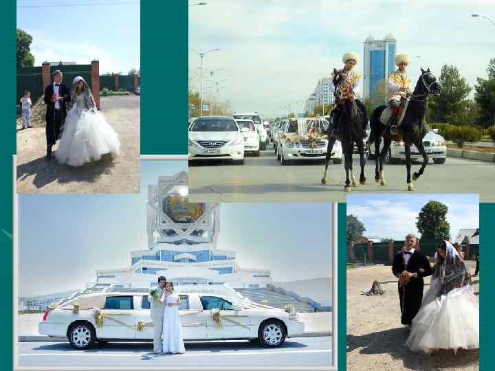 • Свадьбы у туркмен всегда были «окружены» множеством различных обычаев и обрядов. Главную роль в их исполнении играла одежда. Считалось, что даже имеет магическое значение, выполняя функции оберега и очищения