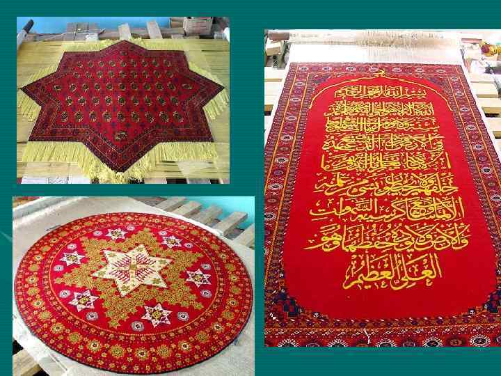 Ковроткачество § § § Искусство туркменского ковроткачества зародилось не менее шести тысячелетий тому назад. Древность туркменских традиций изготовления ковров подтверждают многочисленные археологические находки, а также письменные источники, которые рассказывают о необыкновенно красивых коврах из Парфии, которая находилась ранее на территории современного Туркменистана. Туркменские ковры самобытны и не похожи на ковровые изделия других народов ни техникой, ни орнаментом, ни цветовыми решениями. В цветовой гамме туркменского ковра преобладает бордовый цвет, который является фоном. А для орнамента используются темные тона синего, зеленого, черного цветов, а также оранжевый и малиновый орнамент. Черный цвет является неотъемлемой составляющей рисунка туркменского ковра и символизирует собой стихию воды, и как вода обрамляет землю, так и орнаментальные элементы черного цвета обрамляют все остальные орнаменты ковра, разграничивая и разделяя один орнаментальный элемент от другого. По традиции, в туркменском ковроткачестве используют только натуральные красители, что позволяет добиться характерной, традиционной цветовой гаммы, а в качестве сырья со стародавних времен используют только лучшие сорта шерсти местных пород овец. Очень качественные и практичные ковры, великолепно переносят неблагоприятные воздействия в виде влаги или грязи, создают уют в доме и радуют глаз своей красотой.