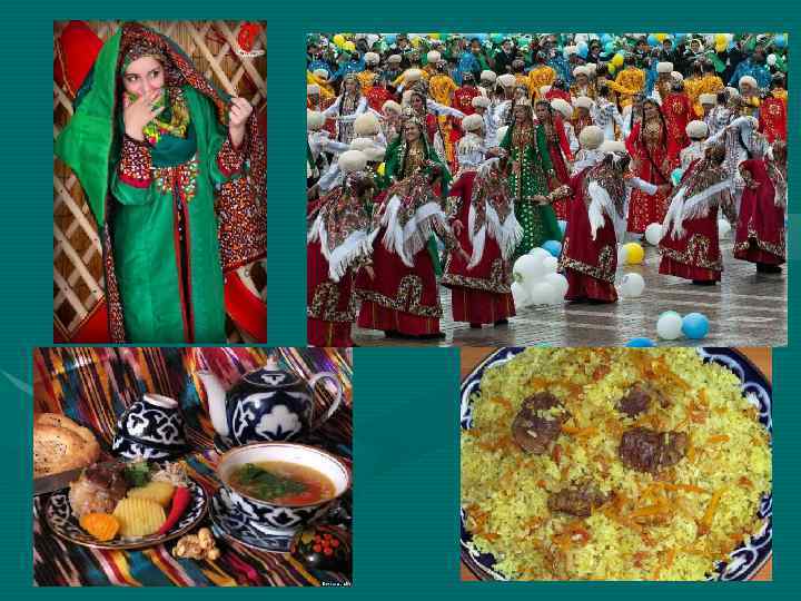 Знаете почему Восток так славится своим гостеприимством? Потому , что его жители искренне считают, что гость посылается Аллахом. Как гостя встретишь, такую почесть окажешь Всевышнему. Еще в древние времена , кочуя по пустыням семьями и испытывая все тяготы, связанные с этим , люди без поддержки друга просто не выжили бы. Не оказать прием уставшему путнику, считалось очень дурным тоном. От такого человека отворачивались даже близкие родственники. Очень гостеприимны и туркмены. Туркменское гостеприимство - самый определяющий признак этого дружелюбного народа. Туркмены часто складывают мнение о человеке по тому, как он принимает гостей. Гостя приветствуют словами «Хош гелдиниз!» и, кроме того, произносят ритуальные фразы: «Как мы рады вас видеть! Какую честь вы нам оказали!» Не сесть с туркменом за стол, не отведать угощения, не выпить верблюжьего молока, значит сильно обидеть человека, который искренне старался. Мы знаем , что люди Востока предпочитают трапезничать , сидя на полу. Но в обязательном порядке для гостя стелется самая лучшая скатерть, на которой и расставляются все угощения. Кстати, наступать на скатерть ни в коем случае нельзя, ведь у туркменов она считается священной, а значит, наступив на такую скатерть, ты совершаешь грех. Также у туркменов очень трепетное отношение к соли и к хлебу. Для них эти продукты священны, и на них также ни в коем случае нельзя наступать. Туркменская кухня , несколько однообразна, но очень вкусна и сытна. В основном мясные блюда ( баранина, птица), мучные ( чуреки )и молочные ( чала ). Ну и конечно же необходимо сказать несколько слов о зеленом чае. Туркмены зеленый чай пили, пьют и будут всегда пить в огромных количествах. Это один из самых излюбленных напитков.