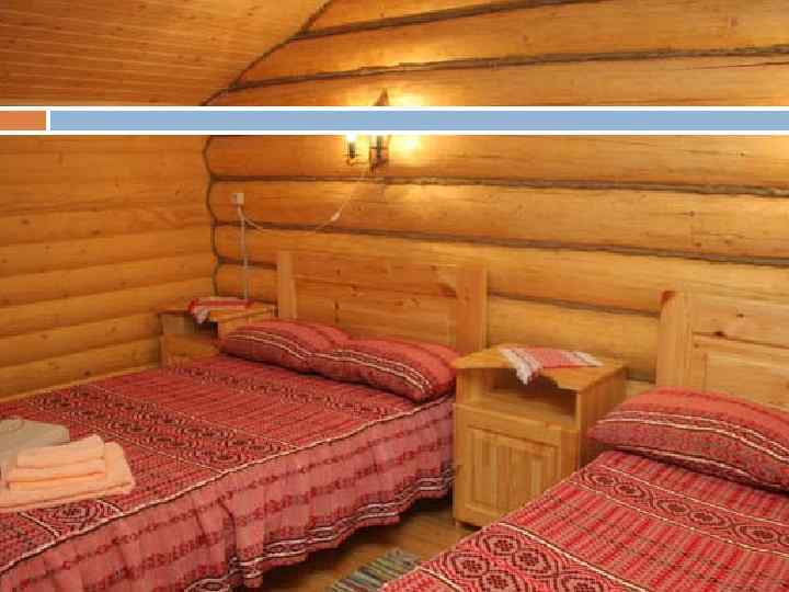 дом «Люкс» (2 -х этажный дом с двумя отдельными жилыми блоками, имеющими два отдельных входа и собственные веранды): 4 -х местный 2 -х уровневый номер. В номере: санузел (душевая кабина, раковина, туалет), ТВ, три спальни (одна с двуспальной кроватью и две с полутороспальними кроватями), кухонная зона (холодильник, электрический чайник, посуда), телефон; коттеджи: 4 -х местный 2 -х этажный коттедж VIP. В коттедже: два санузла (душевая кабина, туалет), гостиная с камином, кухня (холодильник, электрический чайник, СВЧ-печь, посуда), две спальни (двуспальные кровати), комната отдыха, сауна, полы с подогревом; 4 -х местный 2 -х этажный коттедж VIP из кедра. В коттедже: два санузела (душевая кабина, туалет), гостиная с камином, кухня (холодильник, электрический чайник, СВЧ-печь, посуда), две спальни (двуспальные кровати), комната отдыха, сауна, полы с подогревом.