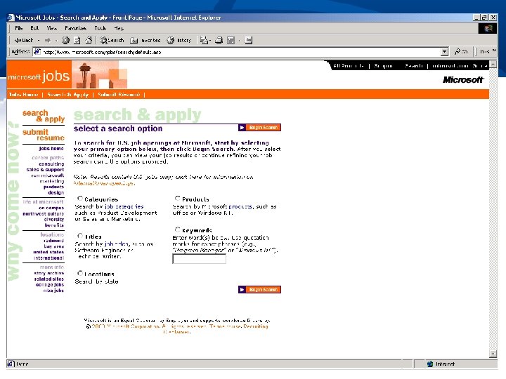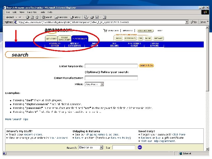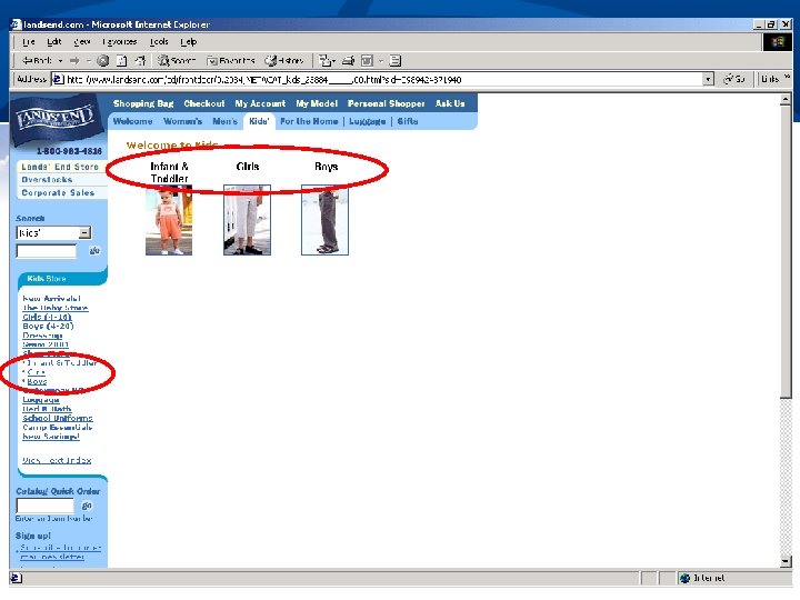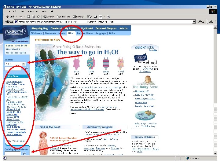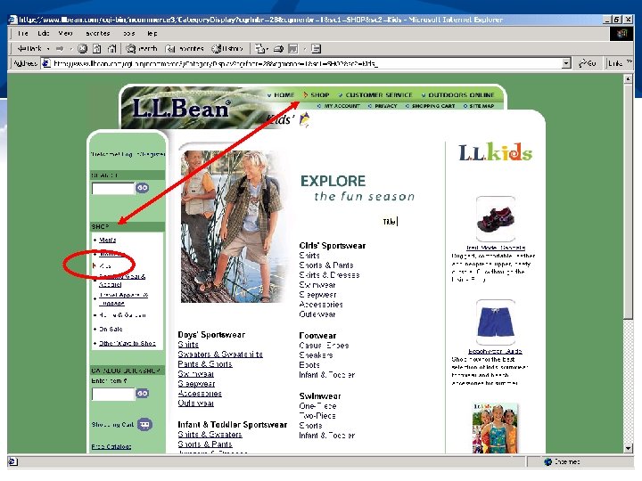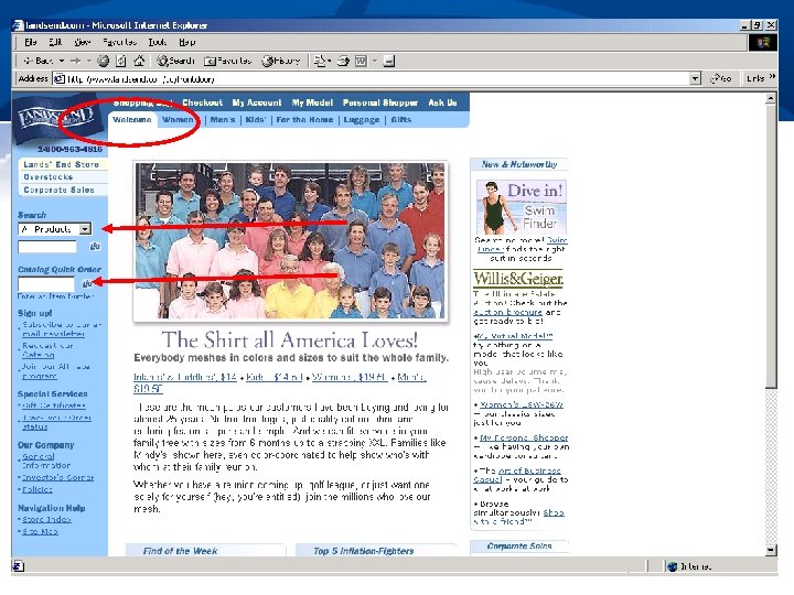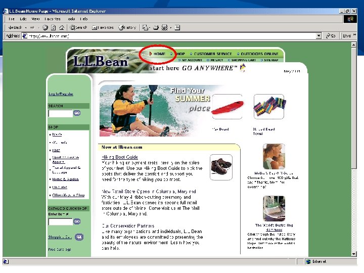 Finding What I Need n Who are users; what do they know n n n What they are trying to “do” n n Web expertise, locale Offline props (e. g. , catalogs, etc. ) Browsing or “window-shopping” Searching for specific information Buying a particular product Reflect how users organize information in the site’s organization n Promote organization to user