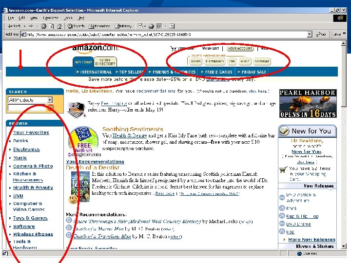 Personalization and Privacy n n n Personalization is extension of usability principles Personalization is not a substitute for usability Requires knowledge of user Take time to understand basic privacy issues involved Amazon’s approach to personalization is a good example