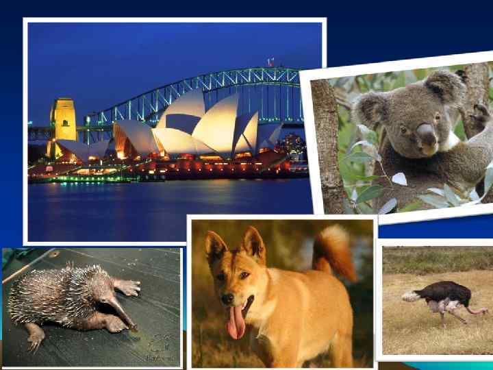 The population: 16 mln people The total area: 7687 sq. kms The capital: Canberra The places of interest of country: the kangaroo, the dingo, the emu, the koala, the echidna, Tasmania Island, the Central Lowlands, the Murray, the Darling, the Australian Alps, Sydney, Melbourne, Adelaide, surfing, etc. Australia