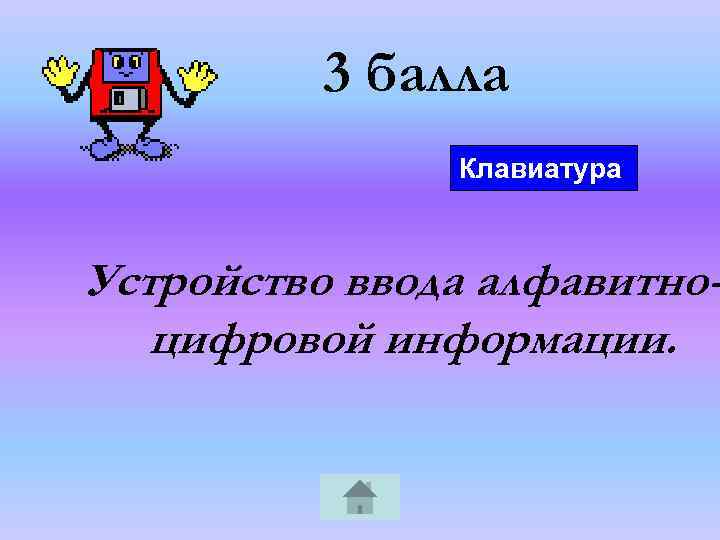 3 балла Клавиатура Устройство ввода алфавитноцифровой информации.