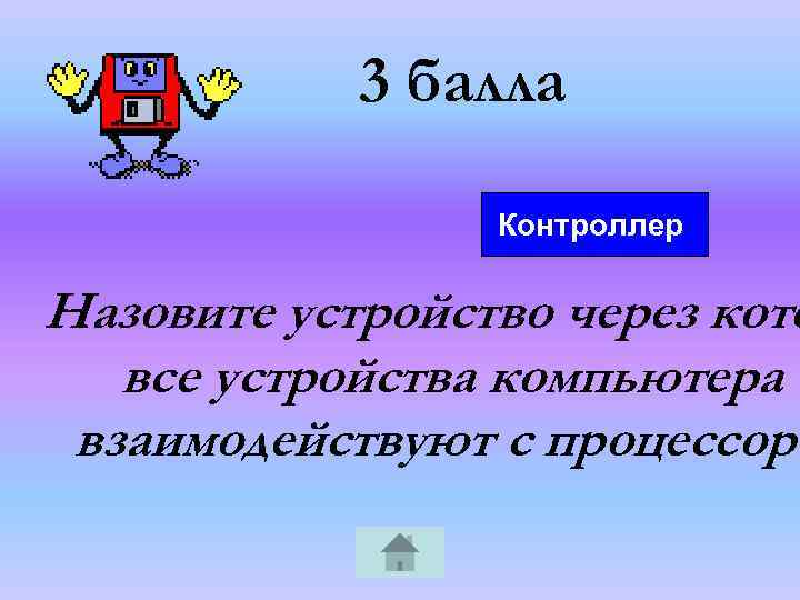 3 балла Контроллер Назовите устройство через кото все устройства компьютера взаимодействуют с процессоро