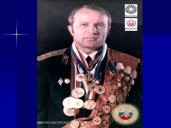 n Full name: Valery Grigoryevich Rezantsev n The USSR, Russia n The club: Spartak, Dinamo(Alma-Ata) n Date of birth: The 8 -th of October 1946 n The place of birth: Novomoskovsk (Stalinogorsk) n The professional career: 1964 -1976 n The height: 177 sm n The weight: 90 kg n Twice Olympic champion; n Three-times Europe champion n Has the Order of Red Banner of Labor; n Twice awarded to the Order of the Badge of Honor n The soviet Greco-roman wrestler , the Master of Sport of the USSR(1970), Honored coach of Russia 1996.