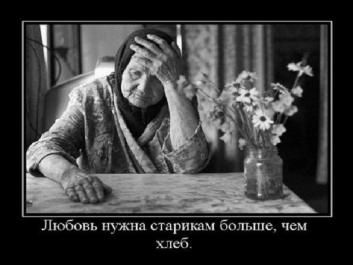Загляни в её впалые глаза, По делу и без дела, увлажнённые слезой. Прижми к сердцу тёплую, дрожащую руку, Испещрённую морщинистой дугой. Пойми, ей не нужна валюта, мех, твой социальный статус, тойтерьер, Только присутствие родного человека и, чтобы ты тепло оделся по зиме. Она стара, потрёпана, беспомощна и согнута в спине. Пережила войну, волнения и смуты, Но всё ещё боится оставаться в темноте. Сегодня, может завтра, День вперёд или назад Ей нужно будет только 3 аршина. Подумай, а сколького ты не успел сказать?