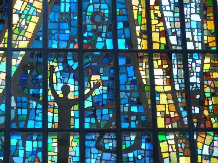 • Виды витражей Расписной витраж На поверхность стекла наносится рисунок прозрачными красками с последующим обжигом. Краска накрепко вплавляется в стеклянную основу, составляя с ней единое целое.