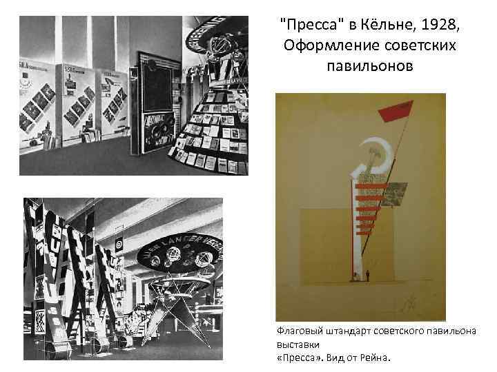 "Пресса" в Кёльне, 1928, Оформление советских павильонов Флаговый штандарт советского павильона выставки «Пресса» . Вид от Рейна.