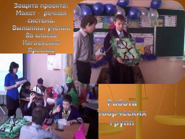 Проектная деятельность учащихся Ф. И. уч-ка Кл. Название проекта 1. Чен С. 11 Информационный проект «Южная Корея» 2. Нагаевский Я. 8 Макет «Речная система» 3. Группа уч-ся 8 Спектакль «Или и Каратал» 4. Группа уч-ся 8 Составление фильма «Сырдарья и Амударья реки слез» 5. Миронова З. 9 «Экологические проблемы Аральского моря» 6. Кравченко В. 9 «Экологические проблемы озера Балхаш» 7. Шалагина И. 9 «Экологические проблемы Каспийского моря» 8. Павенко Ю. 10 «Вокруг света за 80 дней» «Внутреннее строение Земли» «Омск – столица северная» 9. Миронова Г. 9 «Семья – как социокультурная ячейка общества» «Туризм – один из видов активного отдыха» 10. Евтушенко А. 9 «Водный голод планеты»