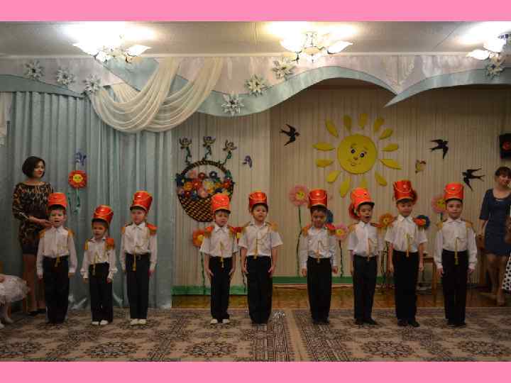 На першому етапі була проведена така робота: • Музичним керівником був розроблений сценарій, підібраний музичній матеріал та підібрані рухи для танків • Вихователі були ознайомлені зі сценарієм • Дітям були роздані ролі та слова • Разом з костюмером були розроблено та узгоджено ескізи костюмів • Розроблено та узгоджено з художником ескізи декорацій • Батьківський комітет взяв на себе витрати щодо матеріалів для костюмів та декорацій