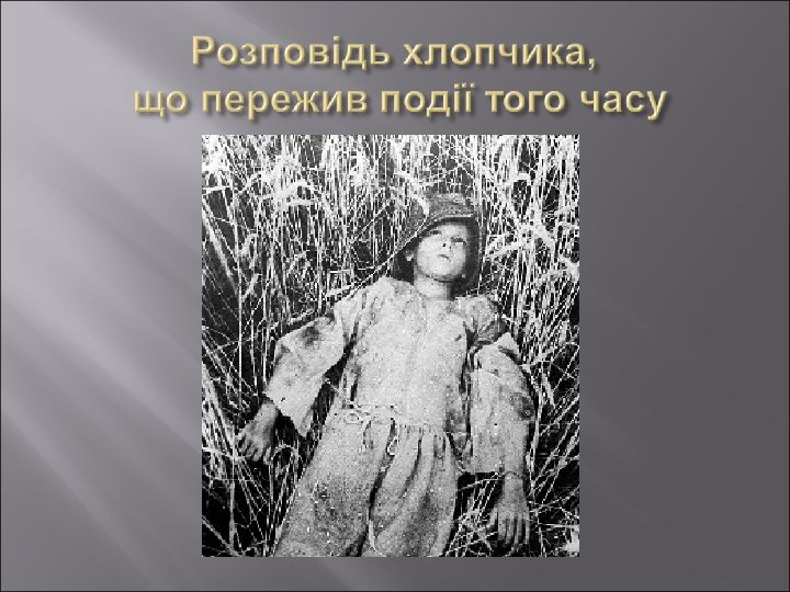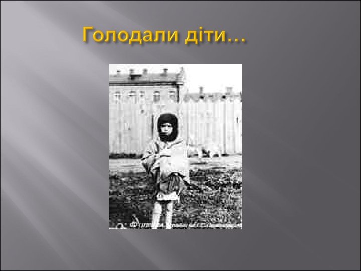 Голодомор 1932 1933 рр. спри чинив величезну смертність населення, особливо дітей і стариків. Селяни змушені були їсти собак, котів, щурів, трупи коней, листя й кору дерев. Траплялися численні випадки канібалізму. Села обезлюдніли. Живі не мали сил ховати померлих. У деяких населених пунктах над сільрадами вивішували чорні прапори: це означало, що жителів тут уже немає. А в цей час на сусідніх залізничних станціях, у елеваторах під охороною міліції зберігалися тисячі пудів хліба. Поставлені у безвихідь, селяни кидали домівки й пробували дістатися до міста. Не всім це вда валося. Багато гинуло просто неба на дорогах. Інших зупиняли міліцейські кордони. До міста потрапляло порівняно мало людей. Але порятунку не було й тут. Прагнучи врятувати хоча б дітей, батьки залишали їх у ліка рнях, державних установах, у під'їздах будинків і просто на вулицях.