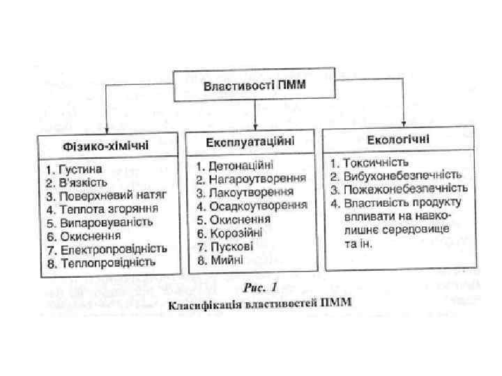 Фізико-хімічні властивості ПММ визначаються різними методами в лабораторних умовах. Експлуатаційні властивості ПММ виявляються при їх використанні безпосередньо в двигунах внутрішнього згоряння, механізмах і системах будівельно-дорожніх машин (БДМ). Екологічні властивості ПММ виявляються при взаємодії продуктів з навколишнім середовищем, тобто при контакті з засобами механізації в умовах зберігання, транспортування, перекачування та фільтрування, а також при контакті з атмосферою, водою, людиною, тваринним і рослинним світом.