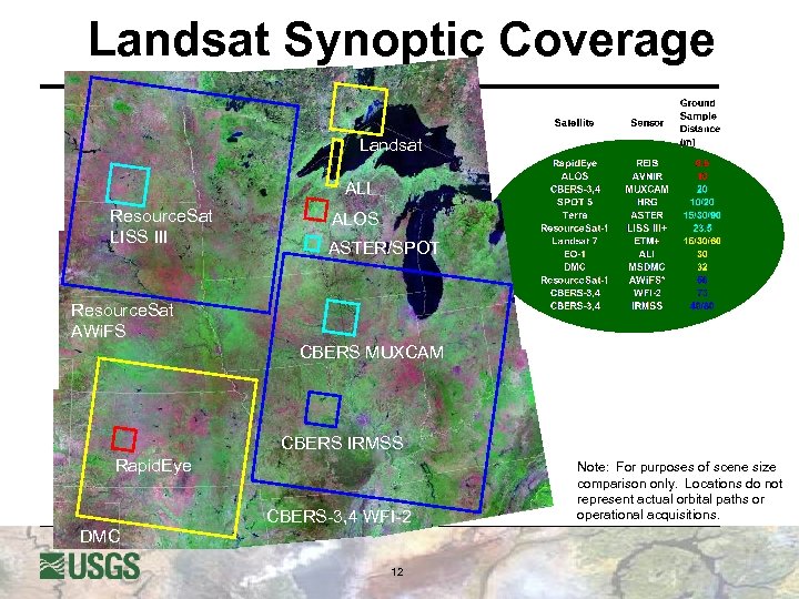 Landsat Synoptic Coverage Landsat ALI Resource. Sat LISS III ALOS ASTER/SPOT Resource. Sat AWi. FS CBERS MUXCAM CBERS IRMSS Rapid. Eye CBERS-3, 4 WFI-2 DMC 12 Note: For purposes of scene size comparison only. Locations do not represent actual orbital paths or operational acquisitions.