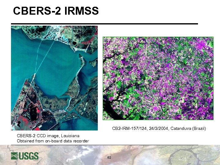 CBERS-2 IRMSS CB 2 -IRM-157/124, 24/3/2004, Catanduva (Brazil) CBERS-2 CCD image, Louisiana Obtained from on-board data recorder 62
