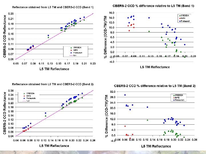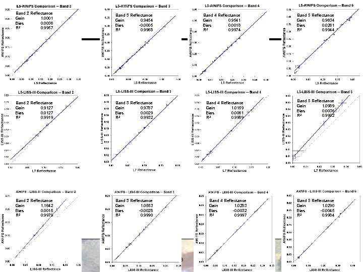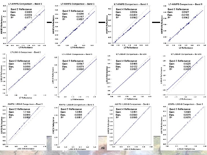 Band 2 Reflectance Gain 1. 0001 Bias 0. 0036 R 2 0. 9957 Band 3 Reflectance Gain 0. 9454 Bias -0. 0005 R 2 0. 9968 Band 2 Reflectance Gain 0. 9127 Bias 0. 0127 R 2 0. 9919 Band 3 Reflectance Gain 0. 9787 Bias 0. 0029 R 2 0. 9932 Band 2 Reflectance Gain 1. 1642 Bias 0. 0015 R 2 0. 9979 Band 3 Reflectance Gain 1. 0553 Bias -0. 0028 R 2 0. 9990 Band 4 Reflectance Gain 0. 9541 Bias 0. 0018 R 2 0. 9974 Band 4 Reflectance Gain 1. 0159 Bias 0. 0061 R 2 0. 9989 Band 4 Reflectance Gain 1. 0283 Bias -0. 0032 R 2 0. 9997 88 Band 5 Reflectance Gain 0. 9634 Bias 0. 0261 R 2 0. 9944 Band 5 Reflectance Gain 1. 0989 Bias 0. 0036 R 2 0. 9992 Band 5 Reflectance Gain 1. 0290 Bias -0. 0045 R 2 0. 9984