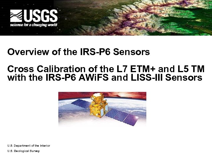 Overview of the IRS-P 6 Sensors Cross Calibration of the L 7 ETM+ and L 5 TM with the IRS-P 6 AWi. FS and LISS-III Sensors U. S. Department of the Interior U. S. Geological Survey
