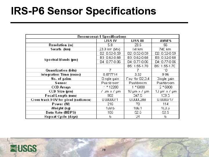 IRS-P 6 Sensor Specifications 78