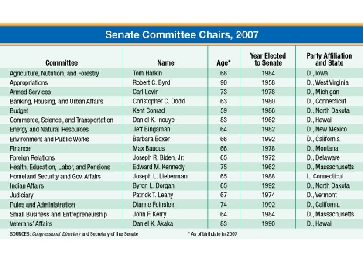 • The advent of caucuses [meeting of the majority party] in Congress has made the party representation of interests in Congress a more direct process. • There a series of caucuses in Congress based on race, region, ideology, and economics. Examples: • Blue Dog Coalition • Congressional Black Caucus • Congressional Caucus for Women's Issues • Congressional Hispanic Caucus • Congressional Horse Caucus • Congressional Internet Caucus • Congressional Second Amendment Caucus • Congressional Victim's Rights Caucus • Congressional Western Caucus • Flat Tax Caucus • U. S. -Mongolia Friendship Caucus • Victory in Iraq Caucus • … and LOTS more