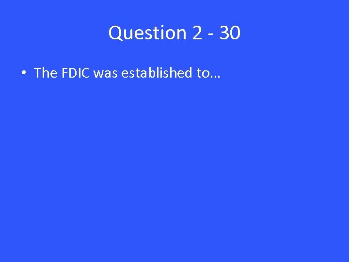 Question 2 - 30 • The FDIC was established to…