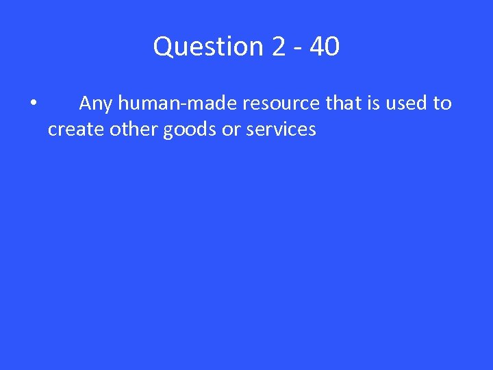 Question 2 - 40 • Any human-made resource that is used to create other goods or services