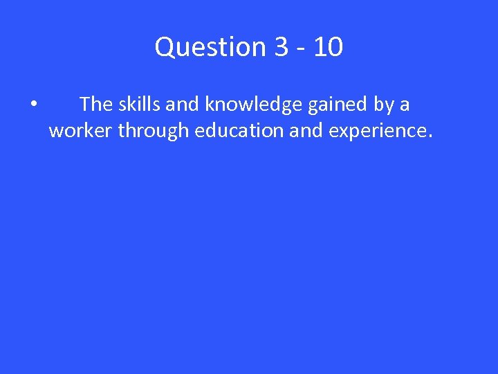 Question 3 - 10 • The skills and knowledge gained by a worker through education and experience.