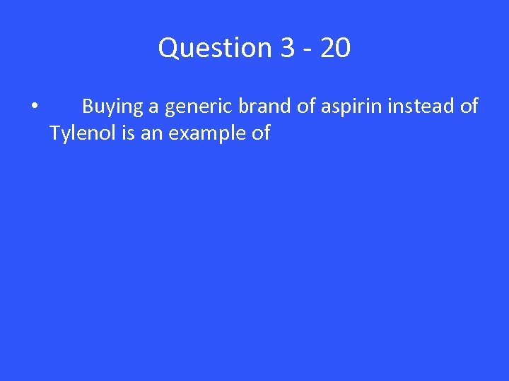 Question 3 - 20 • Buying a generic brand of aspirin instead of Tylenol is an example of