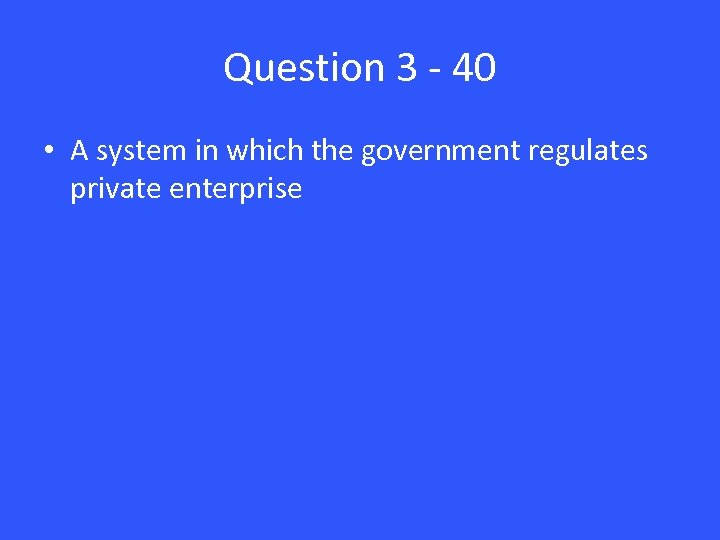 Question 3 - 40 • A system in which the government regulates private enterprise
