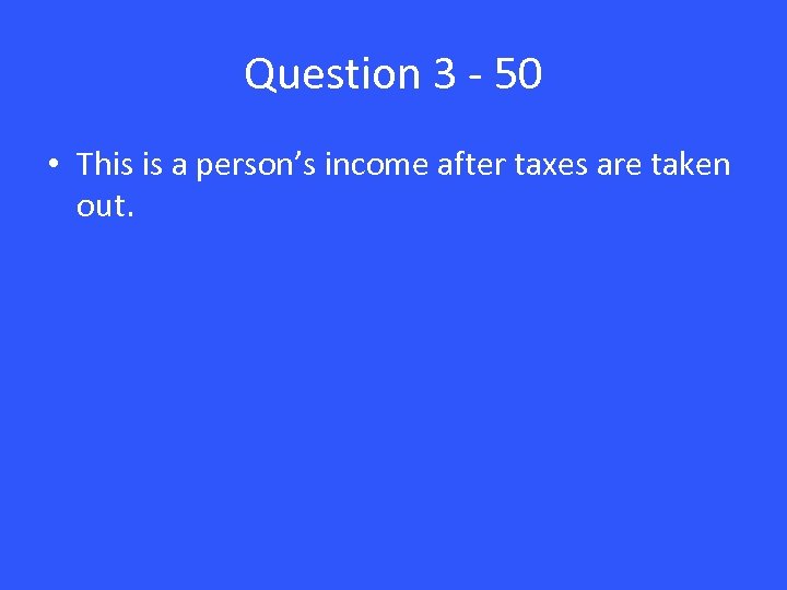 Question 3 - 50 • This is a person’s income after taxes are taken out.