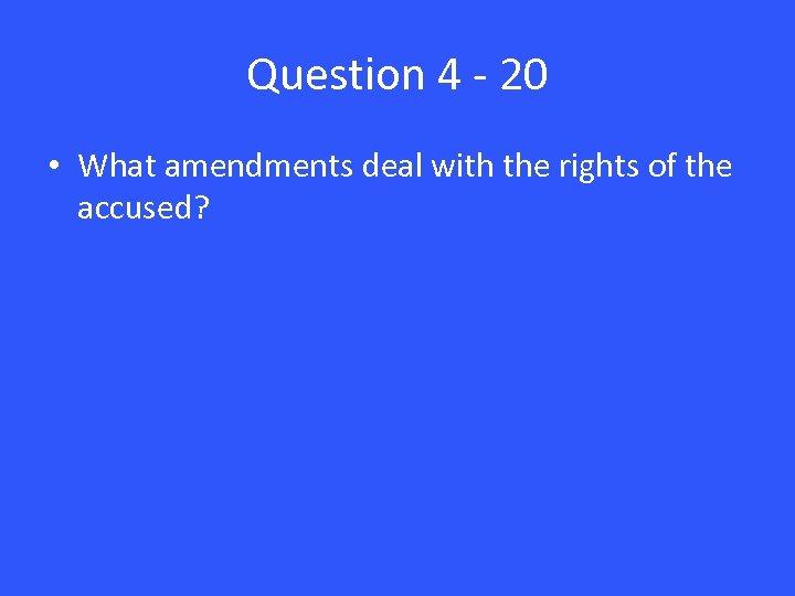 Question 4 - 20 • What amendments deal with the rights of the accused?
