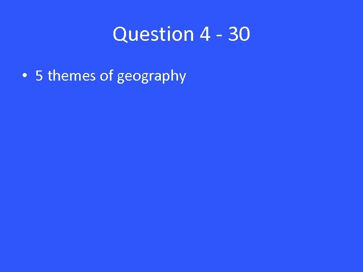 Question 4 - 30 • 5 themes of geography