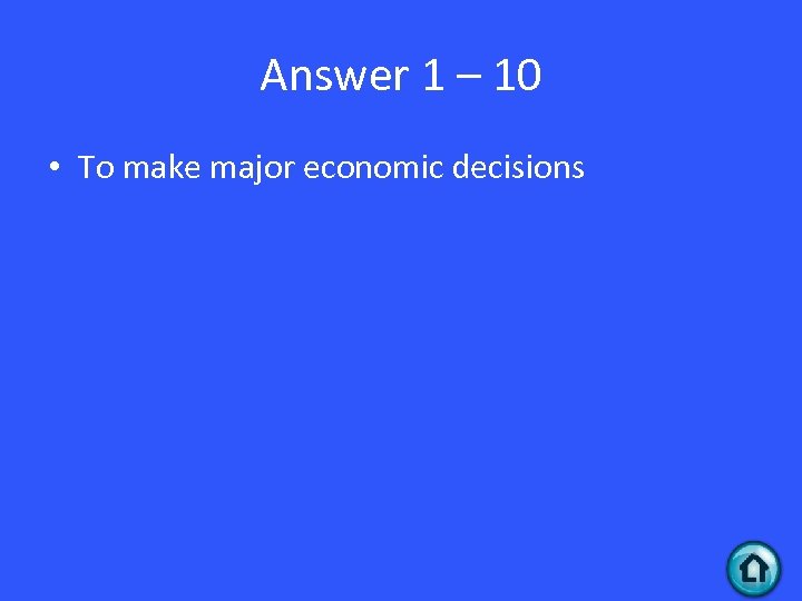 Answer 1 – 10 • To make major economic decisions