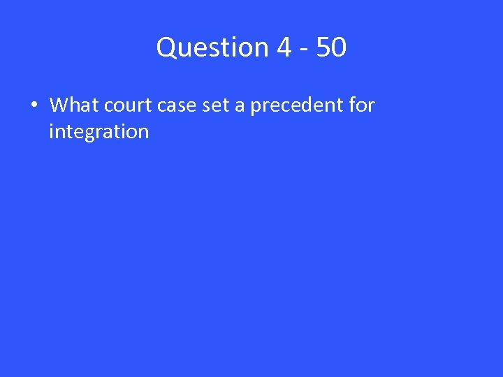 Question 4 - 50 • What court case set a precedent for integration