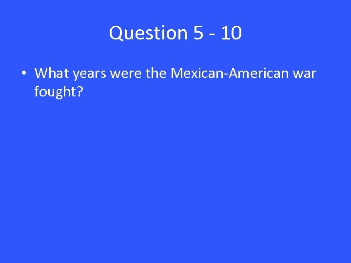 Question 5 - 10 • What years were the Mexican-American war fought?