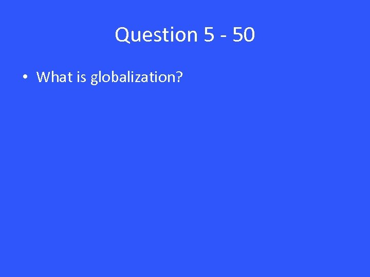 Question 5 - 50 • What is globalization?